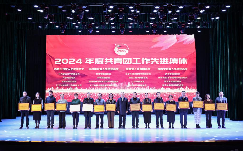 晚會(huì)現(xiàn)場,學(xué)校表彰了2024年共青團(tuán)工作中涌現(xiàn)的先進(jìn)集體和個(gè)人,校領(lǐng)導(dǎo)為“全國五四紅旗團(tuán)總支”“五四紅旗團(tuán)總支”“共青團(tuán)工作先進(jìn)集體”“五四紅旗團(tuán)支部”“優(yōu)秀共青團(tuán)干部(教師)”“優(yōu)秀共青團(tuán)干部(學(xué)生)”“優(yōu)秀共青團(tuán)員”“優(yōu)秀志愿團(tuán)體”“優(yōu)秀青年志愿者”“優(yōu)秀志愿者帶隊(duì)教師”等先進(jìn)集體和個(gè)人頒獎(jiǎng)。