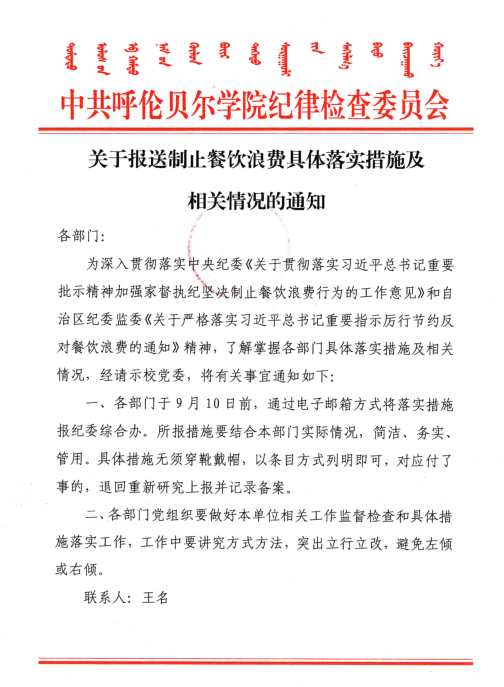 關于報送制止餐飲浪費具體落實措施及相關情況的通知