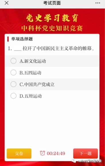 4.答題時限是25分鐘,進入答題頁面則系統自動開始倒計時。參賽者作答完畢可以隨時提前交卷;為防作弊,答題中途退出時,倒計時將繼續計時;25分鐘倒計時結束后,系統將自動交卷。