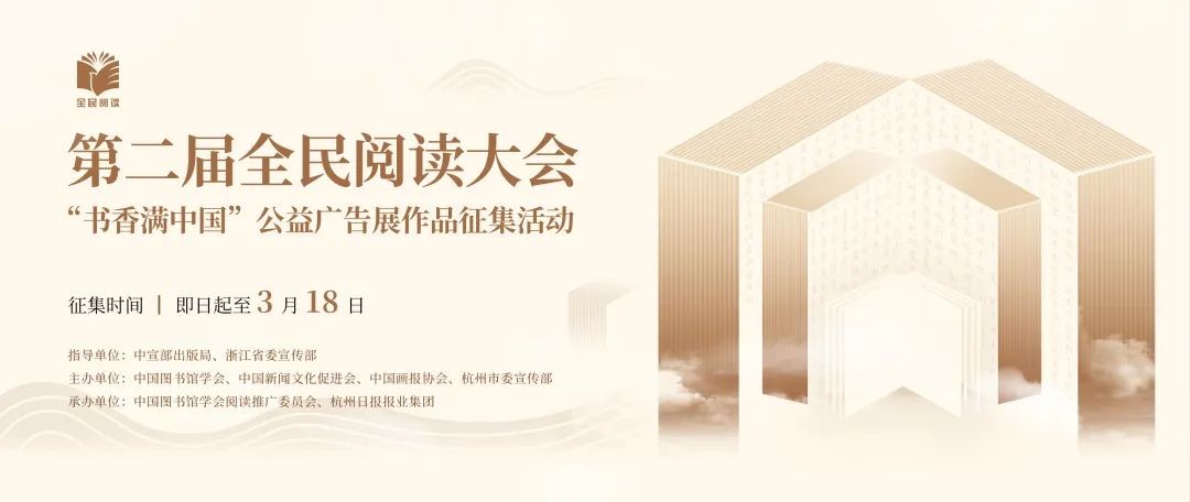 黨的二十大報告明確指出,要深化全民閱讀活動。為深入學習貫徹黨的二十大精神,倡導全民閱讀、建設書香社會,第二屆全民閱讀大會將于2023年4月23日在杭州開幕。在中央宣傳部出版局、浙江省委宣傳部指導下,由中國圖書館學會、中國新聞文化促進會、中國畫報協會、杭州市委宣傳部主辦,中國圖書館學會閱讀推廣委員會、杭州日報報業集團承辦的第二屆全民閱讀大會“書香滿中國”公益廣告展,現面向全國公開征集全民閱讀主題的優秀海報、攝影及視頻作品,符合條件的作品將予入展。