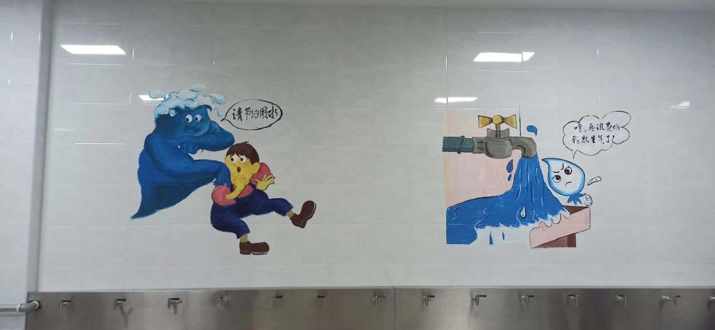 活動(dòng)開始前,志愿者們認(rèn)真準(zhǔn)備,精心設(shè)計(jì)每幅草圖。經(jīng)過充分討論確定后,同學(xué)們主要圍繞節(jié)約用水、保護(hù)水資源、愛護(hù)環(huán)境、網(wǎng)紅卡通人物等主題進(jìn)行創(chuàng)作并按照樣圖進(jìn)行實(shí)地繪畫。活動(dòng)結(jié)束后志愿者們又對(duì)水房衛(wèi)生進(jìn)行了打掃,用自己的勞動(dòng)使水房煥然一新。