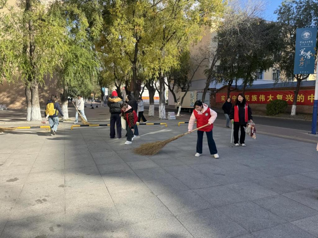 活動啟動后,各二級學院迅速掀起衛生掃除熱潮。老師們率先垂范,深入班級、宿舍與學生一同勞動,有的手持掃帚清掃地面落葉,有的彎腰撿拾綠化帶中的垃圾,有的協助整理宿舍內務,用實際行動為學生樹立榜樣;學生們更是熱情高漲,以班級、宿舍為單位,分工協作、相互配合,從教學樓的課桌抽屜、黑板縫隙,到宿舍樓的走廊拐角、樓梯扶手,再到校園角落的雜草枯枝、衛生死角,大家不放過任何一個細節。一時間,校園內隨處可見師生們忙碌的身影,掃地聲、擦拭聲、搬運雜物的聲音交織在一起,形成了一幅“全員參與、共建美麗校園”的生動畫面。