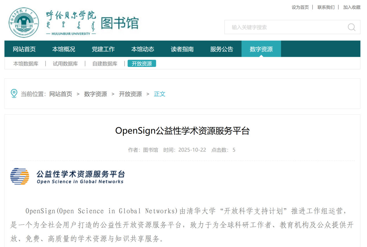 此次,OpenSign平臺(tái)資源共享已經(jīng)落地,11月4日,OpenSign平臺(tái)鏈接正式掛接至學(xué)校圖書館官網(wǎng),全校師生可通過(guò)圖書館網(wǎng)站便捷訪問平臺(tái)資源。后續(xù),清華大學(xué)圖書館可OA開放的新增數(shù)據(jù)庫(kù)在上線以后將陸續(xù)共享。