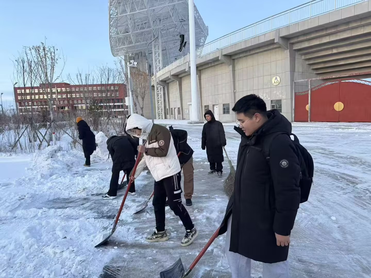 此次集中清理行動中,各二級學院領導率先垂范,帶領師生志愿者重點對教學樓走廊、實驗室角落、宿舍樓道、校園綠化帶等區域的衛生死角、堆積雜物展開全面清掃整治。針對室外積雪,師生們手持鏟雪板、大掃帚等工具,分工協作、干勁十足,將道路與綠化帶的積雪徹底清理、規范聚堆,全力保障校園通行安全,讓整潔暢通的環境成為冬日校園里的一道亮眼風景。